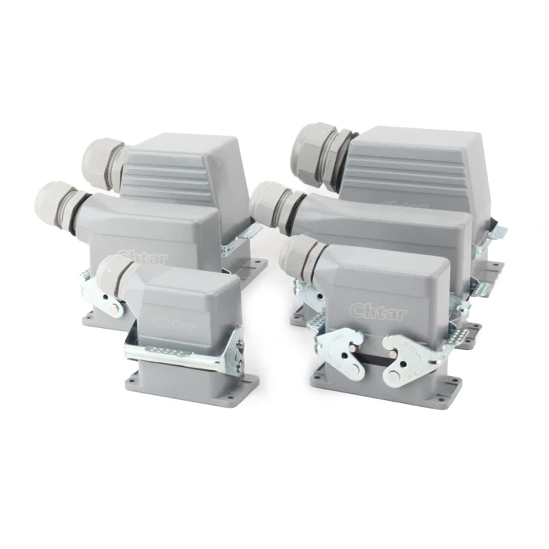 Connectors 24 Pin AG ທີ່ທົນທານທີ່ອອກແບບແລະຜະລິດໂດຍ CHTAR ແມ່ນເຫມາະສົມສໍາລັບ 24-pin HE, HD, HEE, HDD ແລະຕົວເຊື່ອມຕໍ່ຫນັກອື່ນໆ. ຕົວເຊື່ອມຕໍ່ແມ່ນເຮັດດ້ວຍໂລຫະປະສົມອາລູມິນຽມແລະເຄືອບດ້ວຍຜົງສີຂີ້ເຖົ່າ RAL7037. ປະຈຸບັນປະຕິບັດງານຂອງມັນແມ່ນ 16A, ແຮງດັນປະຕິບັດການແມ່ນ 500VAC, ລະດັບອຸນຫະພູມປະຕິບັດງານແມ່ນ -40 ℃ເຖິງ +125 ℃ (-40℉ເຖິງ +257℉), ວົງຈອນສຽບແລະ unpluggging ແມ່ນ 500 ເທື່ອ, ແລະຊັ້ນປ້ອງກັນແມ່ນ IP65.