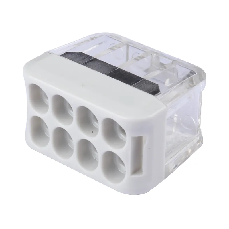 2P 3P 4P 5P 6P 8P Feed-through Wire Connectors ທີ່ບໍ່ມີ levers ກໍາລັງໃຊ້ສໍາລັບການເຮັດໃຫ້ມີແສງແລະເຕົ້າສຽບແລະການເຊື່ອມຕໍ່ສາຍໄຟຂອງ plug. ຕົວເຊື່ອມຕໍ່ສາຍດ່ວນແມ່ນຜະລິດຕະພັນການເຊື່ອມຕໍ່ສາຍໄຟທີ່ປອດໄພ, ການບໍາລຸງຮັກສາພວກເຮົາເຊື່ອມຕໍ່ໄດ້ງ່າຍເພື່ອປະຫຍັດເວລາເຮັດວຽກແລະຄ່າໃຊ້ຈ່າຍແຮງງານ.