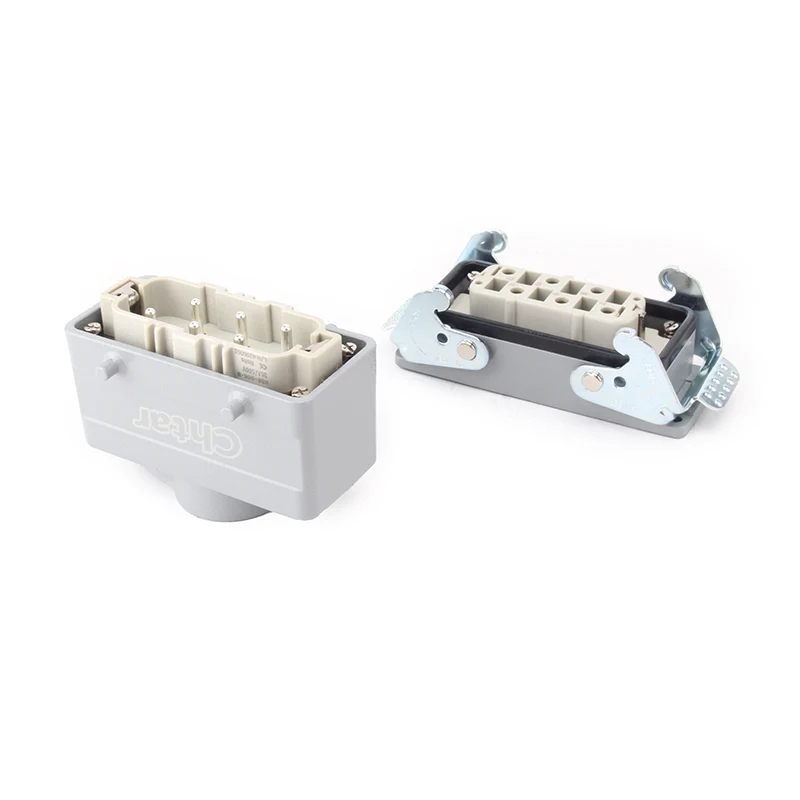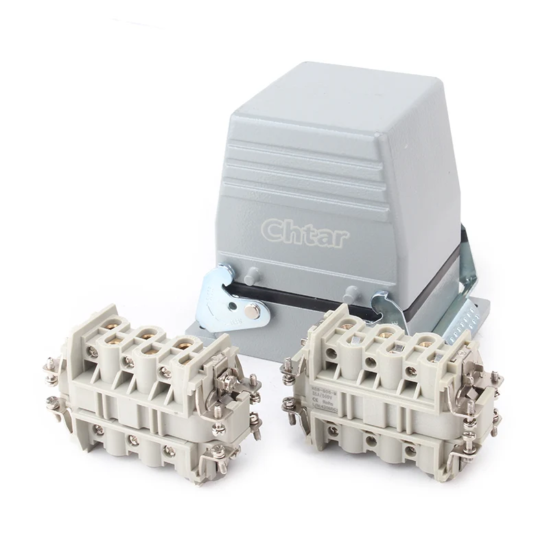 CHTAR ຄຸນະພາບສູງ 35A 6 Pin Insert Heavy Duty Connector ກົງກັບ 35A H16B-TG ຫຼື H16B-TS ທີ່ຢູ່ອາໄສຂອງຕົວເຊື່ອມຕໍ່ຫນັກ. ມັນເຮັດດ້ວຍວັດສະດຸ PC ທີ່ມີຄວາມເຂັ້ມແຂງສູງແລະປະກອບດ້ວຍ 6 pins ໃນເຮືອນອາລູມິນຽມ H16B. ມັນຍັງສາມາດເປັນ 12 pins, ເຮັດໃຫ້ມັນເປັນສອງເທົ່າຂອງ H32B-TG ຫຼື H32B-TS.