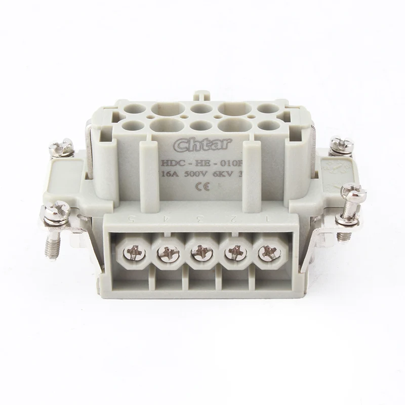 M/F 10 Pin Insert Heavy Duty Connector ທົນທານຂອງ CHTAR ແມ່ນໃຊ້ຮ່ວມກັບຕົວເຊື່ອມຕໍ່ H10B ຂອງຕົວເຊື່ອມຕໍ່ໜັກ. ມັນມີ 10 pins ແລະເຊື່ອມຕໍ່ດ້ວຍ 10 ສາຍ. ພວກມັນແມ່ນເຮັດດ້ວຍເຄື່ອງຄອມພິວເຕີທີ່ມີຄວາມເຂັ້ມແຂງສູງແລະມີ pins ເງິນທອງເຫລືອງ plated ພາຍໃນ. ພວກເຮົາຫວັງວ່າຈະໄດ້ກາຍມາເປັນຄູ່ຮ່ວມມືໄລຍະຍາວທີ່ເຊື່ອຖືໄດ້ຂອງທ່ານໃນປະເທດຈີນ.
